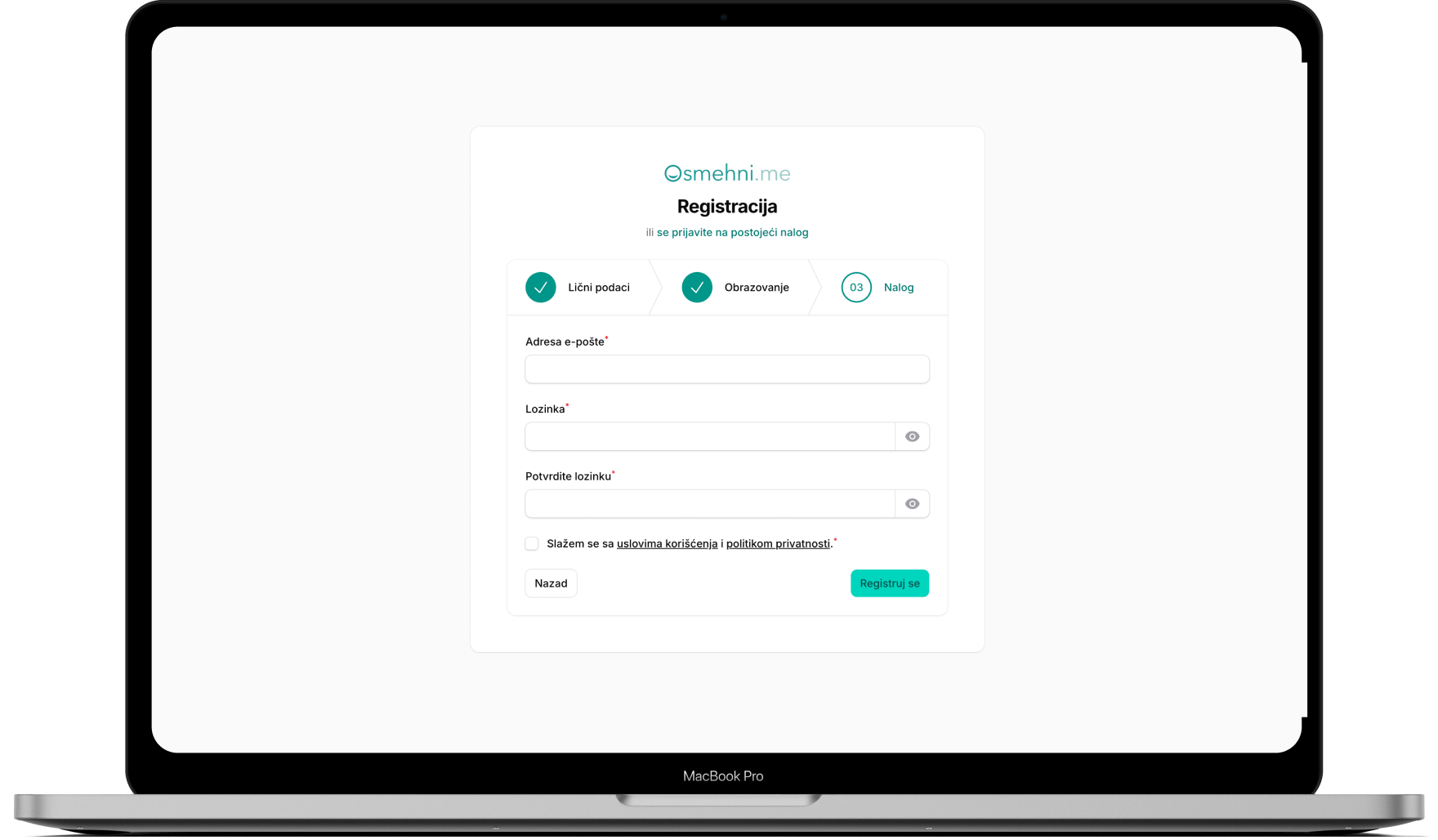 Pristup sistemu je dodatno zaštićen dvostrukom email validacijom, kako bi se sprečio neovlašćen pristup.